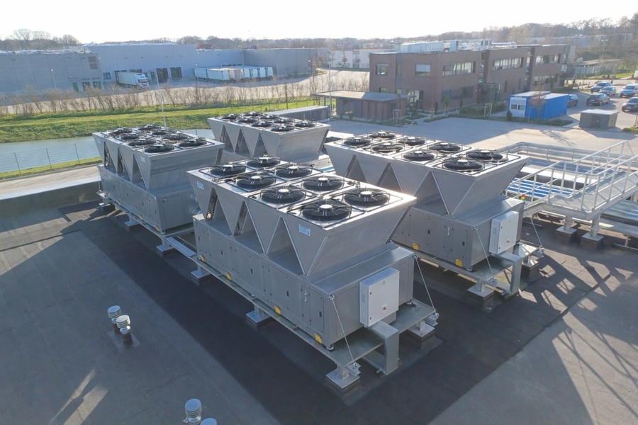 Zentrale Kälteerzeugung, Verteilung über Wasser (kein Kältemittel im Gebäude)